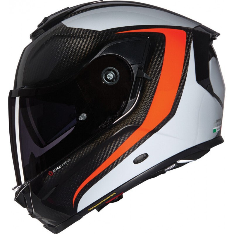 X903 Ultra Carbon - ekskluzivna verzija kacige s visokim sadržajem ugljika u X-liteu, koja predstavlja novu vrhunsku kacigu za putovanje. Odlikuje se dizajnom inspiriranim sportom i širokim rasponom tehničkih značajki, od kojih su neke vrlo inovativne. Njegova smanjena težina i kompaktna veličina (zahvaljujući konstrukciji bogatoj ugljikom i dostupnosti tri veličine vanjske ljuske), sustav za uklanjanje jastučića u slučaju nužde (NERS - Nolan sustav za otpuštanje u slučaju nužde) Ultrawide vizir, novativni mehanizam vizira s funkcijom naginjanja, ekskluzivni sustav za montažu magnetskih vizira (MVA), VPS tamni vizir (podesiv na različite položaje), dvokraki Microlock2 sustav za zadržavanje s mikrometričkim podešavanjem ili sustav za zadržavanje dvostrukog D-prstena (prema verziji proizvoda). Iskusite unutarnju udobnost (s inovativnom mrežastom konstrukcijom), ekskluzivni Liner Sustav kontrole pozicioniranja (LPC) i postavljen za novu generaciju N-Com komunikacijskog sustava čine X-903 ULTRA CARBON najekskluzivnijom putnom kacigom za najzahtjevnije motociklističke turiste.